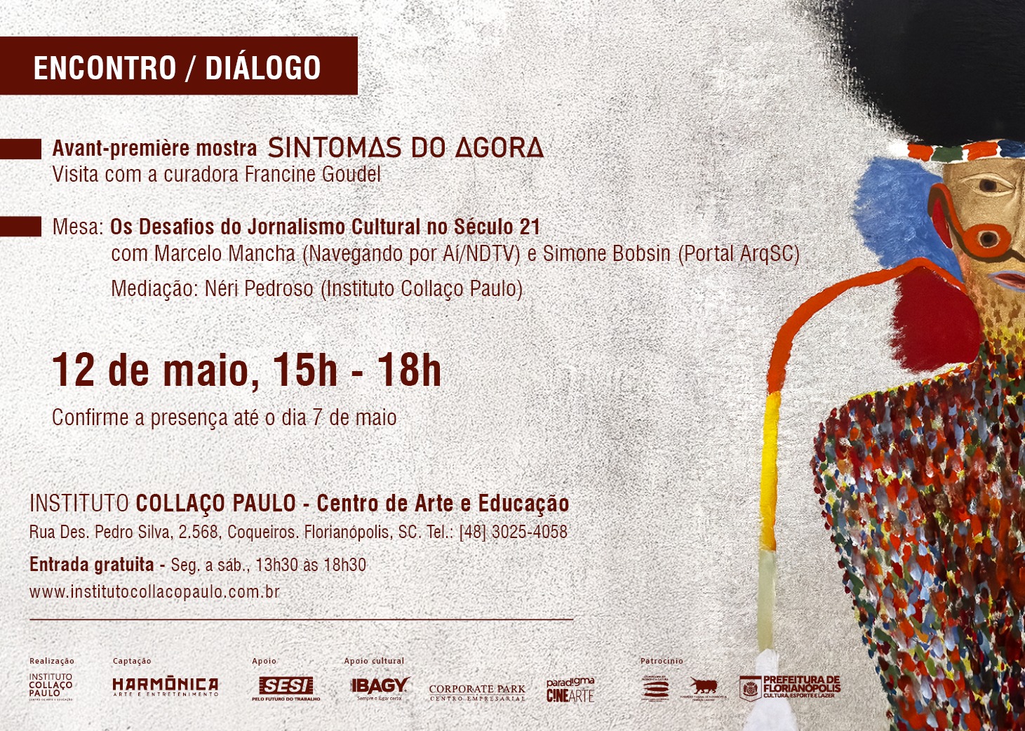 Encontro/Diálogo Os Desafios do Jornalismo Cultural no Século 21 & Avant-première mostra “Sintomas do Agora”, no dia 12 de maio, entre 15 e 18h, no Instituto Collaço Paulo, Centro de Arte e Educação.